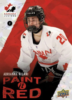 Symbolism (Lenticular Cards!): This set also features the top players from the Men’s U20 and Women’s U18 teams. Each card is three layers deep, with one layer sporting the Team Canada Juniors logo.