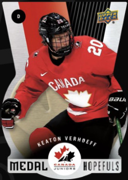 Medal Hopefuls (Metal Cards!): This set, printed on a metal substrate and die-cut in the shape of a medal, features the top players from the Men’s U20 and Women’s U18 teams.