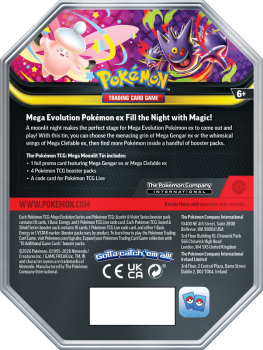 A moonlit night makes the perfect stage for Mega Evolution Pokémon ex to come out and play! With this tin, you can choose the menacing grin of Mega Gengar ex or the whimsical wings of Mega Clefable ex, then find more Pokémon inside a handful of booster packs.